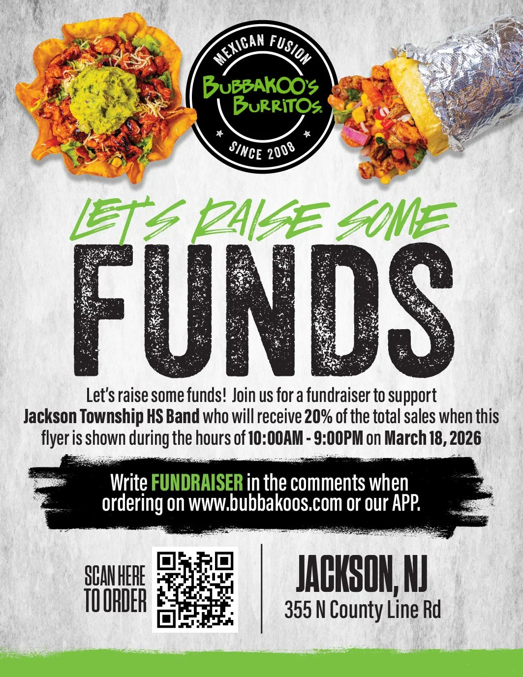 Dine Out at Bubbakoo’s to support the band!